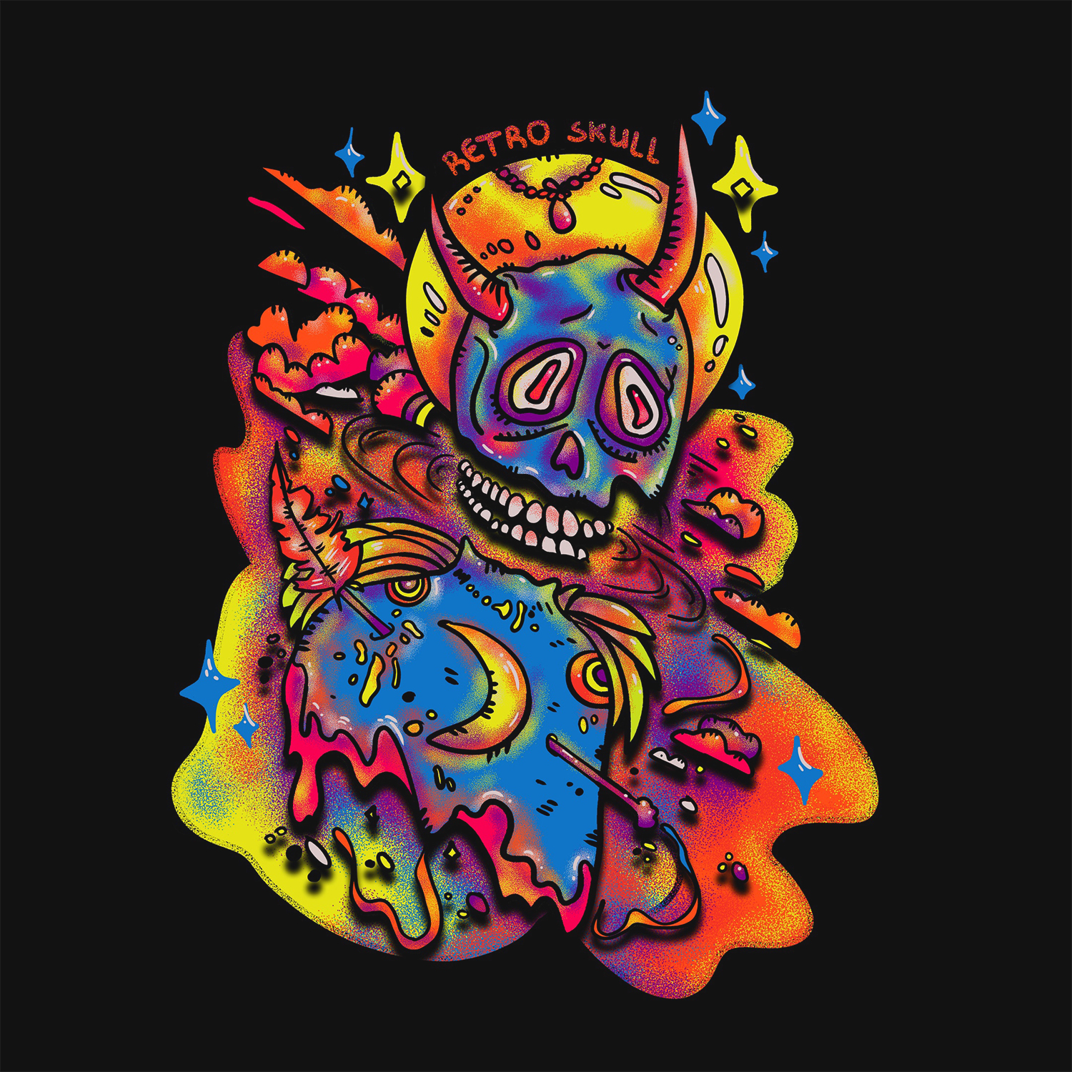 Для создания иллюстрации использовались яркие цвета и стилизованный череп